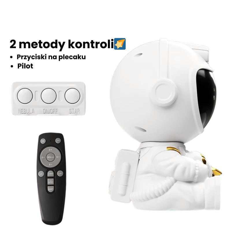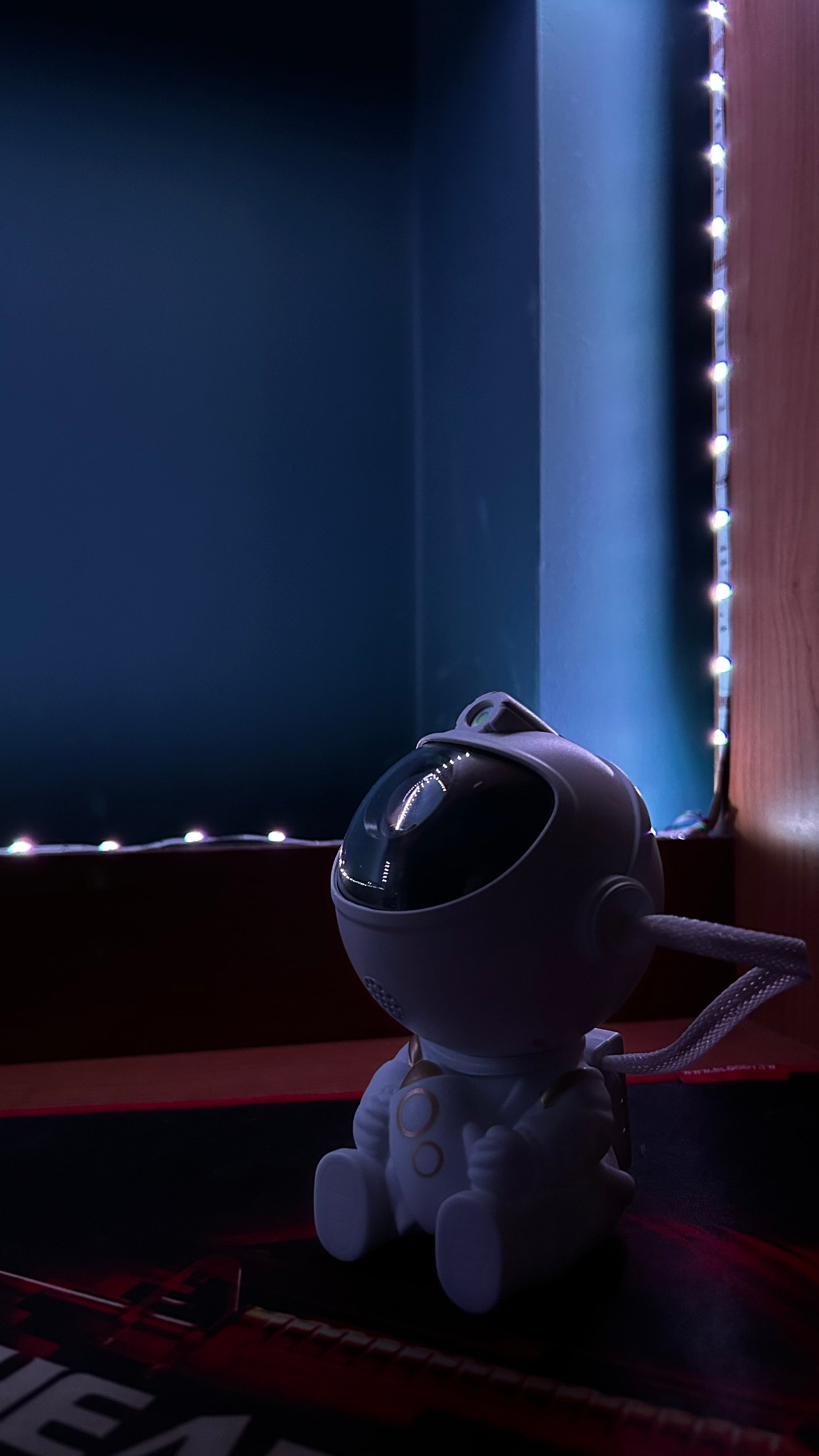 Projektor astronauta tworzy efekt mgławicy na ścianach i suficie – idealny na chill, granie i nocny vibe.